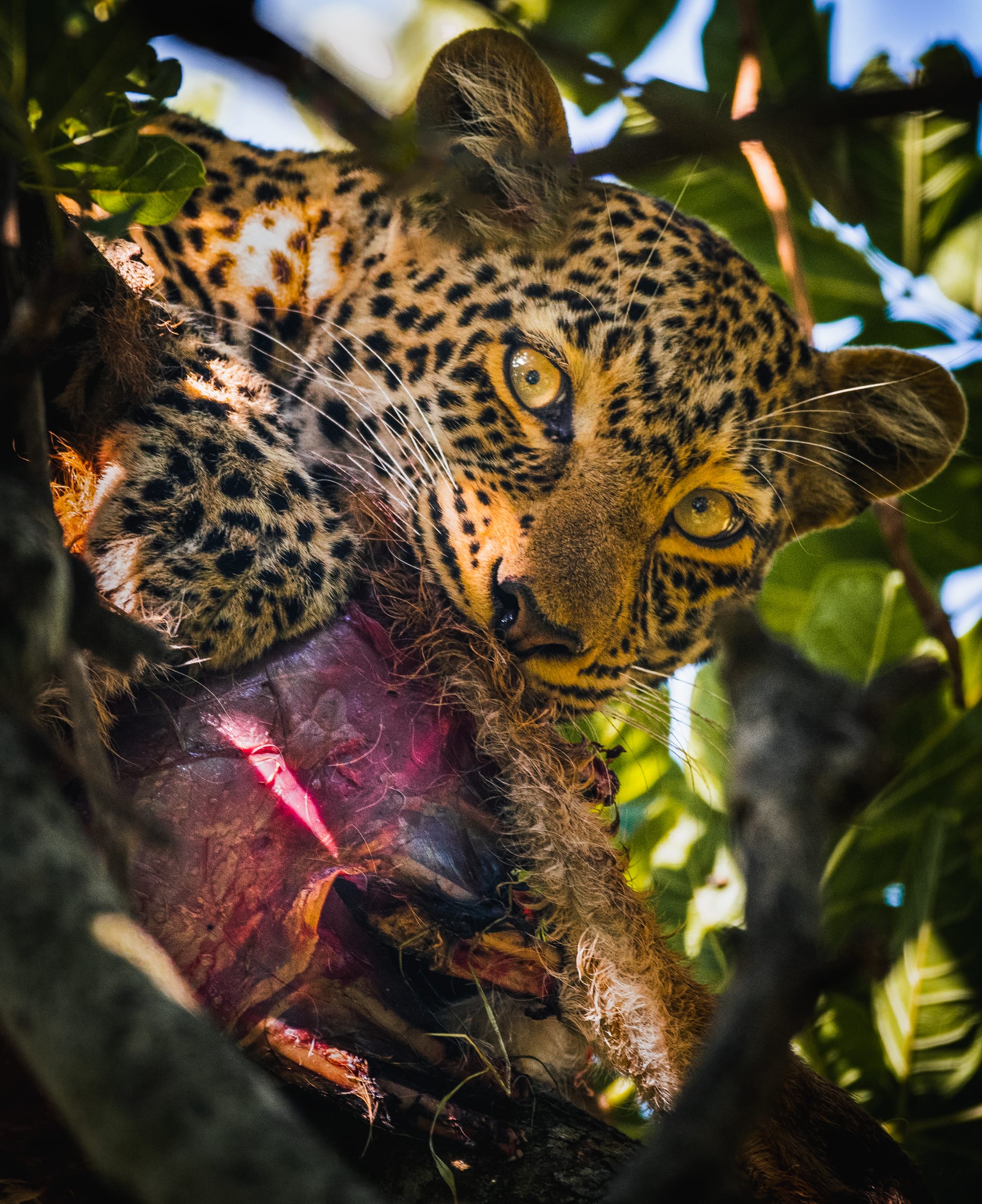 A leopard. Just walking up out of the bush, calm as anything. It looked at the jackal, looked at me — I was maybe fifteen meters away — and then just carried on into the darkness.